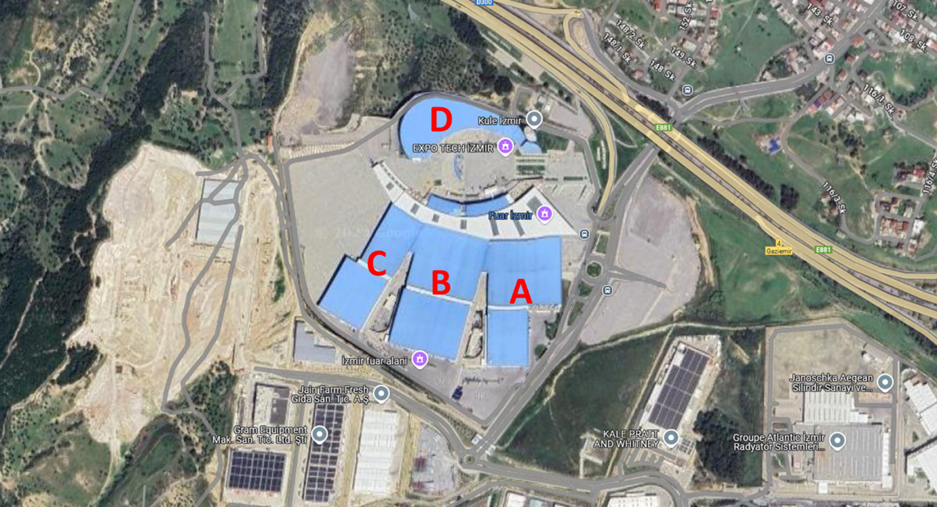 این نمایشگاه در فضایی به وسعت 330 هزار متر مربع در «مرکز نمایشگاهی‌ ازمیر» برگزار می‌شود. (برای مشاهده نقشه اینجا کلیک نمایید)