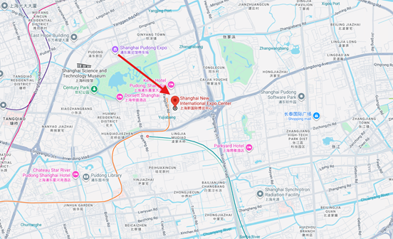 این نمایشگاه در مرکز نمایشگاه بینالمللی جدید شانگهای برگزار میشود.(برای مشاهده نقشه اینجا کلیک کنید)