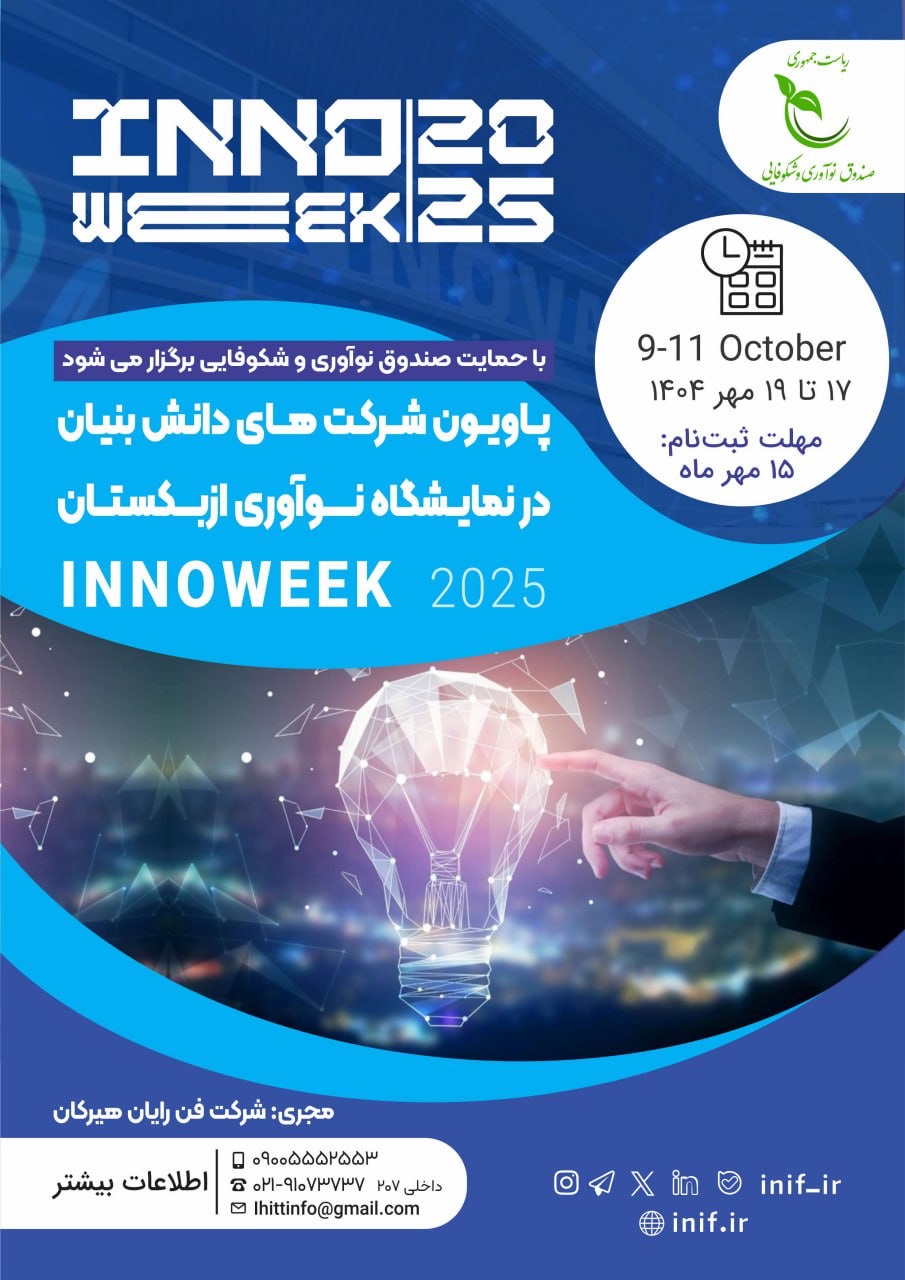 سامانه غزال (Ghazaal.inif.ir) > توانمندسازی و کمک > توسعه بازار > حضور در پاویون نمایشگاه خارجی > پاویون دانشبنیان در نمایشگاه نوآوری ازبکستان (Innoweek 2025)