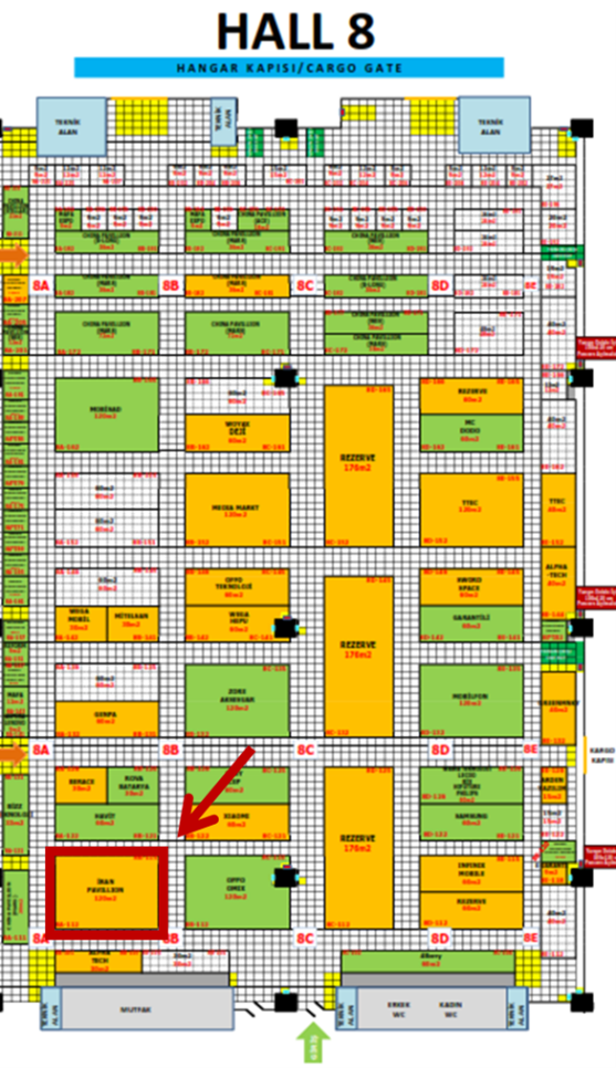 متراژ اولیه پاویون دانشبنیان، 120 متر مربع است و موقعیت آن در سالن شماره 8 این نمایشگاه در تصویر زیر مشخص شده است. با توجه به برنامهریزی انجامشده، برای حضور 20 شرکت در این پاویون، به هر شرکت دانشبنیان 6 متر اختصاص خواهد یافت.