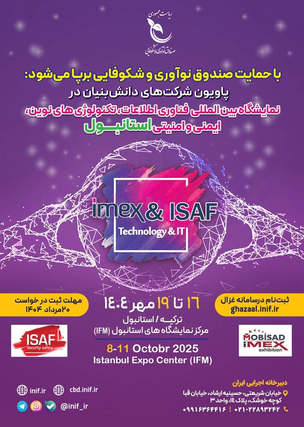 سامانه غزال (Ghazaal.inif.ir) > توانمندسازی و کمک > توسعه بازار > حضور در پاویون نمایشگاه خارجی > پاویون دانشبنیان در نمایشگاه ارتباطات سیار و فناوریهای جدید استانبول (IMEX 2025)