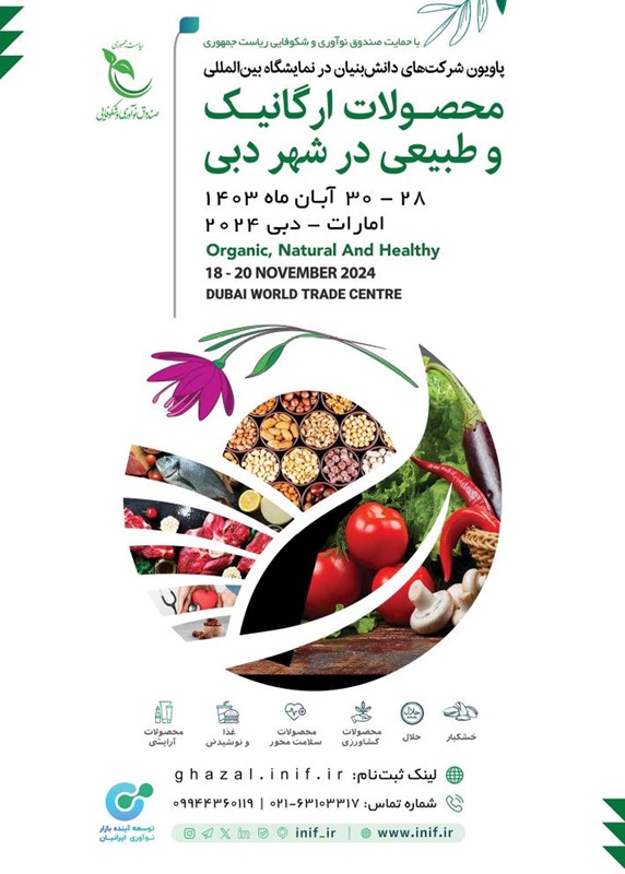صندوق نوآوری و شکوفایی ریاست جمهوری به منظور کمک به بینالمللیشدن شرکتهای دانشبنیان و توسعه صادرات آنها، پاویون شرکتهای دانشبنیان را در «نمایشگاه محصولات ارگانیک و طبیعی» که آبانماه سال جاری در شهر دبی برگزار میشود، برپا میکند.