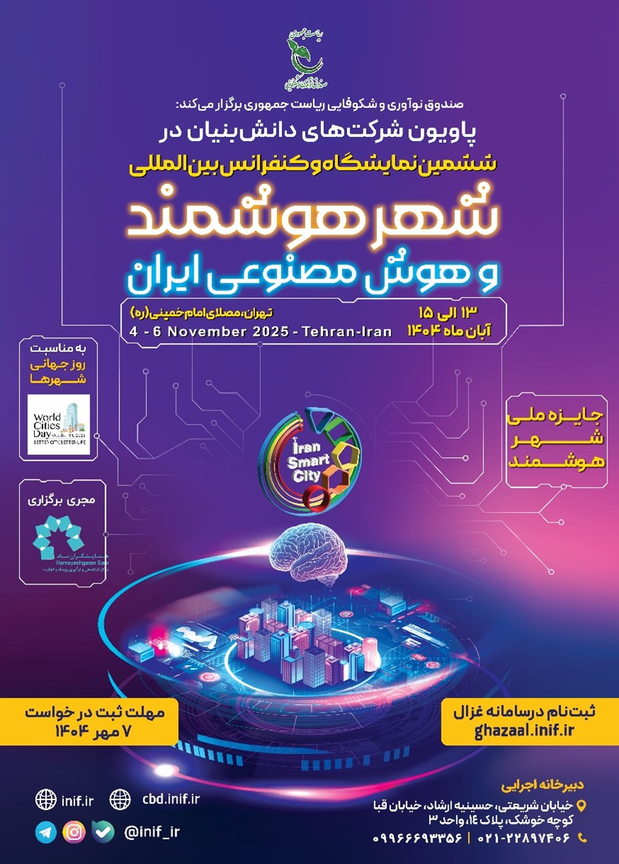 سامانه غزال (Ghazal.inif.ir) > توانمندسازی و کمک > توسعه بازار > پاویون نمایشگاه نمایشگاه بین المللی شهرهوشمند و هوش مصنوعی ایران