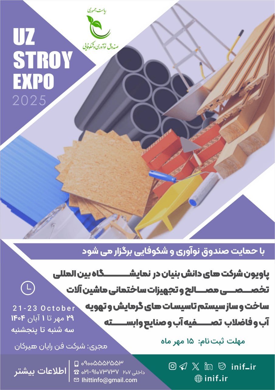 سامانه غزال (Ghazaal.inif.ir) > توانمندسازی و کمک > توسعه بازار  > حضور در پاویون نمایشگاه خارجی > پاویون دانش‌بنیان در نمایشگاه ساختمان ازبکستان (UzStroyExpo 2025)