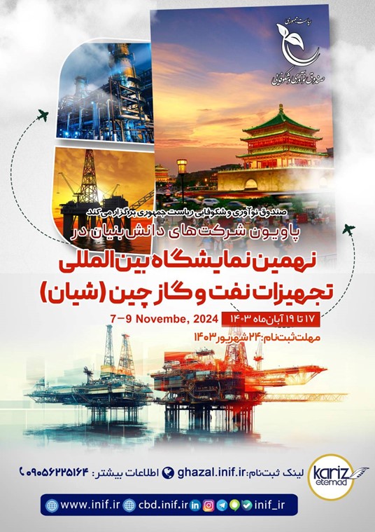 سامانه غزال (Ghazal.inif.ir) > توانمندسازی و کمک > توسعه بازار > پاویون شرکت‌های دانش‌بنیان در نهمین نمایشگاه بین‌المللی تجهیزات نفت و گاز چین (شیان)