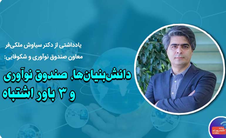 معاون توسعه صندوق نوآوری و شکوفایی طی یادداشتی که در تاریخ 22 فروردین در روزنامه فرهیختگان داشته اند با اشاره به اینکه نگاهی اجمالی به محتوای شبکههای اجتماعی نشان میدهد که در افکار عمومی و حتی برخی کارشناسان، باورهای نادرستی درخصوص این شرکتها و صندوق نوآوری و شکوفایی وجود دارد که اگر به آنها پرداخته نشود، مسیر توسعه اقتصاد دانشبنیان چندان هموار نخواهد بود، به توضیح درباره سه باور اشتباه در این زمینه پرداخت.