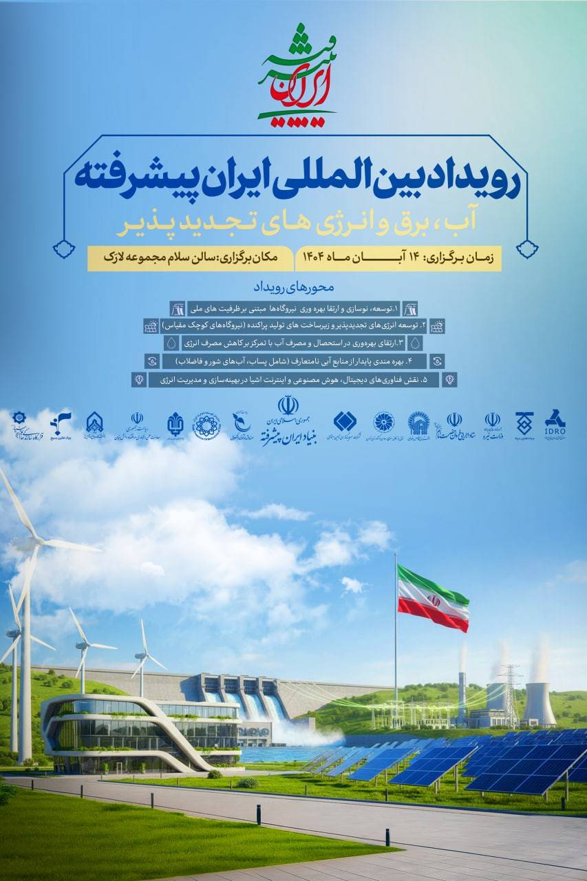 به همت بنیاد ایران پیشرفته، رویداد بینالمللی ایران پیشرفته در حوزه آب، برق و انرژیهای تجدیدپذیر روز چهارشنبه 14 آبان ماه 1404 در مجموعه لارک برگزار میشود.