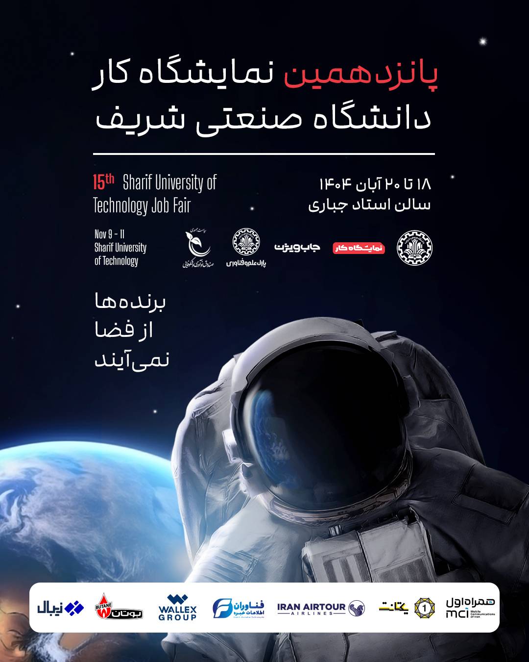 پانزدهمین نمایشگاه کار دانشگاه صنعتی شریف از 18 تا 20 آبان 1404 از ساعت 9 تا 17 در محل سالن تربیت بدنی استاد جباری این دانشگاه برگزار میشود.