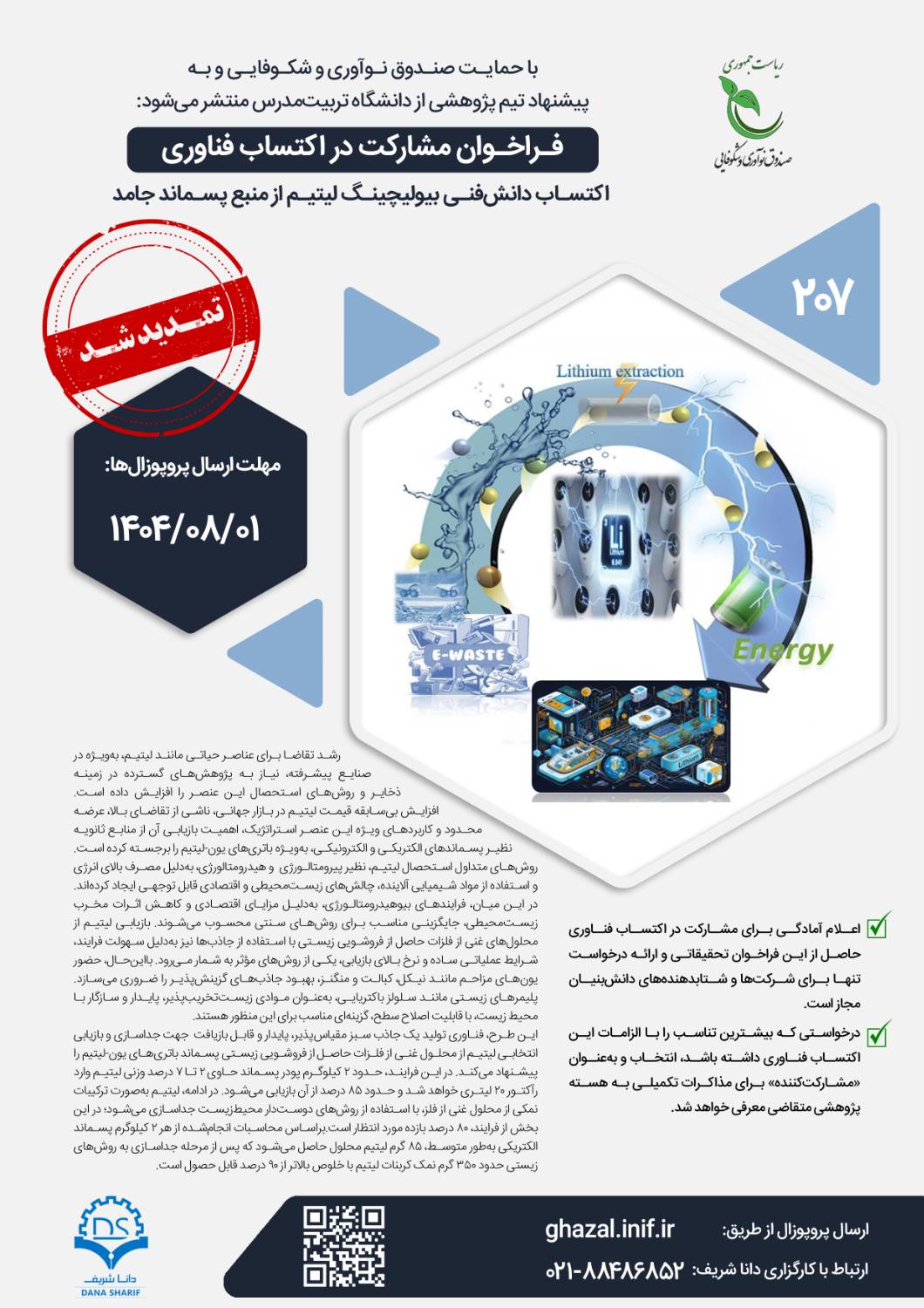 فراخوان مشارکت در اکتساب فناوری «بیولیچینگ لیتیم از منبع پسماند جامد»