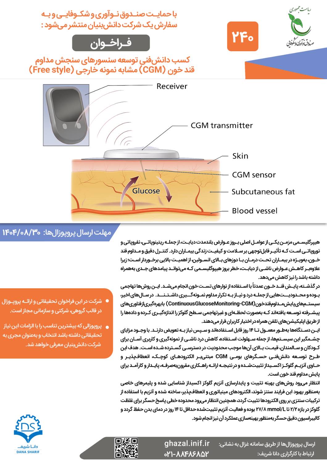 فراخوان مشارکت در طرح «توسعه حسگرهای سنجش مداوم قندخون مشابه نمونه خارجی»