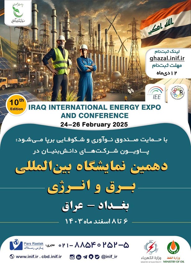 سامانه غزال (Ghazal.inif.ir) > توانمندسازی و کمک > توسعه بازار > پاویون شرکتهای دانشبنیان در دهمین نمایشگاه انرژی عراق (بغداد)
