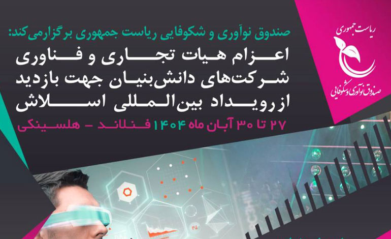 به گزارش روابط عمومی صندوق نوآوری و شکوفایی، رویداد اسلاش (Slush) هر سال در هلسینکی فنلاند برگزار می‌شود و به‌عنوان یکی از بزرگ‌ترین گردهمایی‌های جهانی در حوزه استارتاپ و فناوری شناخته می‌شود.
